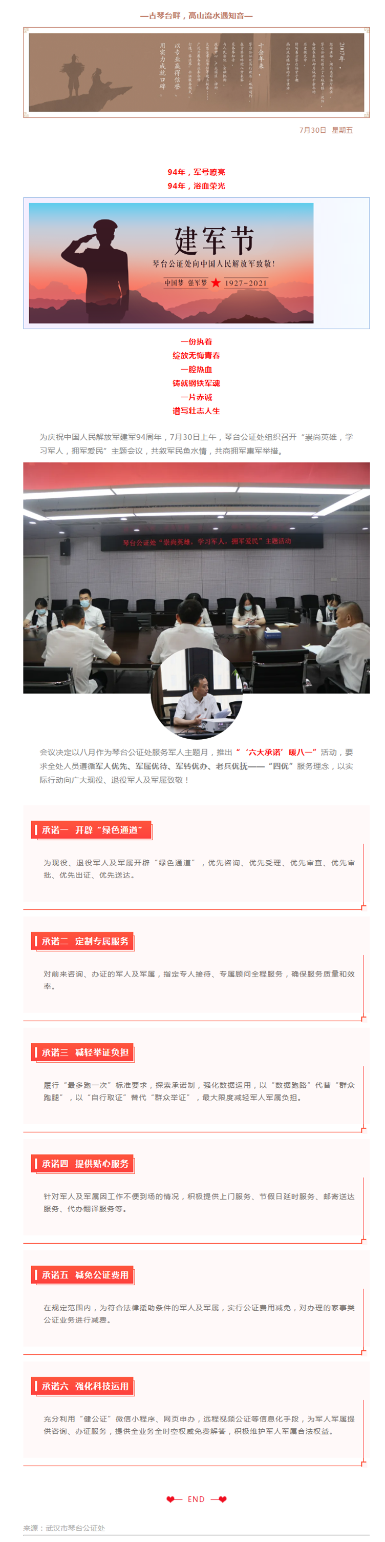 琴台公证处推出“‘六大承诺’暖八一”活动……