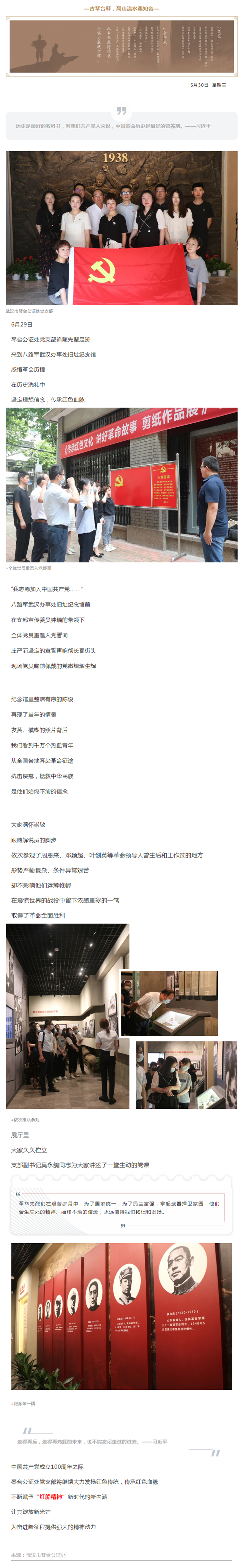 6月29日,琴台公证处党支部追随先辈足迹,来到八路军武汉办事处旧址纪念馆,感悟革命历程,在历史的洗礼中,坚定理想信念,传承红色血脉。