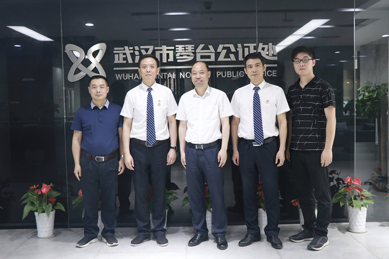 7月4日,武汉市仲裁委主任彭国元、仲裁员工作处处长唐云峰等一行3人到琴台公证处进行工作交流。
