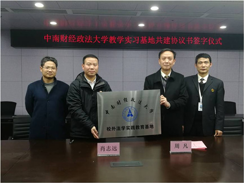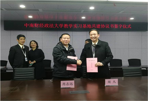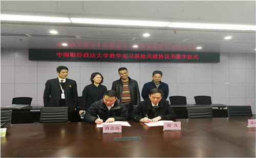 2018年1月2日,我处践行“公证进高校活动”,与中南财经政法大学法学院学者进行座谈交流并与中南财经政法大学法学院签订教学实习(就业实践)基地共建协议,开全市公证处之先河,也是全国首家挂“中南财经政法大学校外法学实践教育基地”匾牌的公证处。武汉市公鉴管理处刘远雄处长、汪鸿副处长参加了此次签约仪式。