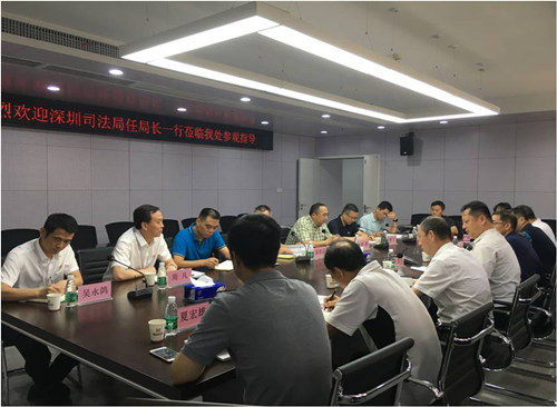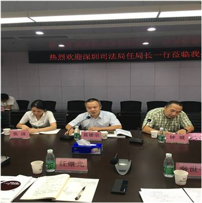 6月25下午,深圳市司法局任继光副局长、律公处熊松青处长、深圳市公证协会秦世平会长带领深圳市公证同仁到我处参观并座谈交流,武汉市司法局聂德宗副局长、省公证协会张沫秘书长、市局公证和司法鉴定管理处刘远雄处长、市公协秘书长、长江公证处主任钟琥陪同并参加座谈。