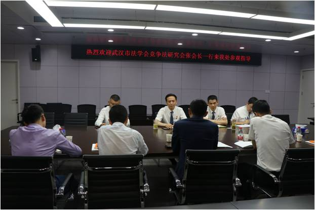 5月29日下午,武汉市法学会竞争法研究会副会长张亚卿,常务理事詹志刚,理事曹剑刚、张之中,秘书廖佩云等一行5人来我处参观交流,双方对各自的业务范围作出介绍,并就今后可能促成的合作展开讨论。琴台公证处主任周凡、副主任吴永鸽、业务二部部长贾寅、支部委员钟瑞参加了座谈。